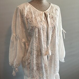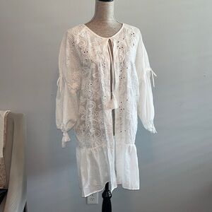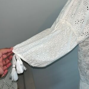 NEW new with tags NWT Anthropologie Maeve Eyelet Balloon Sleeve Kimono Tie Detail Tassel Cover Up Cardigan Size O/S One Size