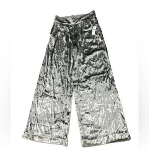 Anthropologie Maeve NWT Silver Anastacia Velvet Wide-Leg Pull On Pants Size S