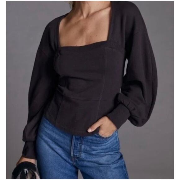 Anthropologie Maeve NWT Sz L Gray Puff Sleeve Sweatshirt Top Seamed Corset