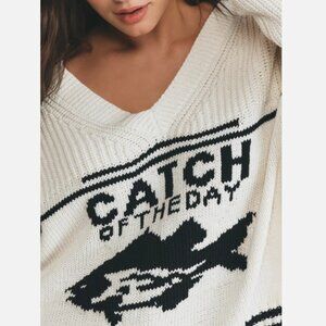 Anthropologie Maeve Nautical Linen-Blend Catch Of The Day Fish Sweater 3X NWT