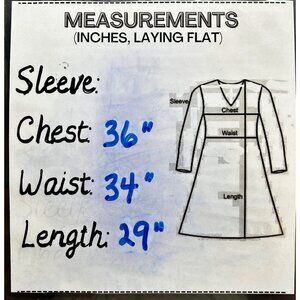 Size: 10 Measurements: Chest: 36", Waist: 34", Length: 29"