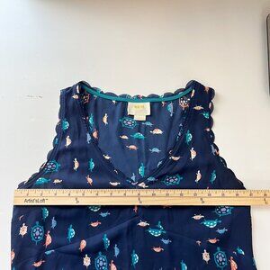 Anthropologie Maeve Navy Blue Turtle Print Scalloped Tank Top Novelty - Size 4