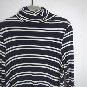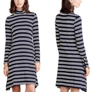 Anthropologie Maeve Navy Blue White Striped Long Sleeve Turtleneck Dress Size XS