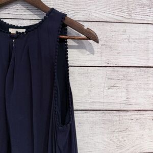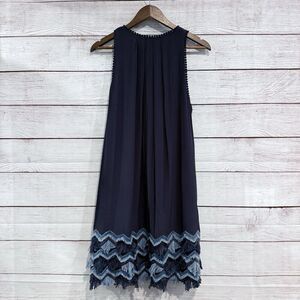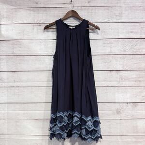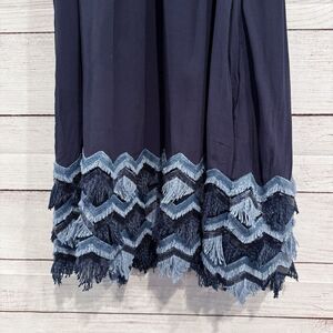 Anthropologie Maeve Navy Halter Dress Size 10 Keyhole Fringe Sequin Sleeveless