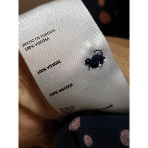 Anthropologie Maeve Navy Pink Polka Dot Long Sleeve Button Down V-Neck Blouse M