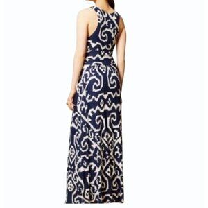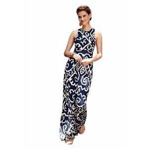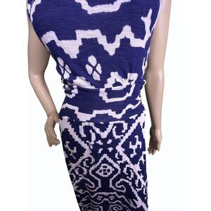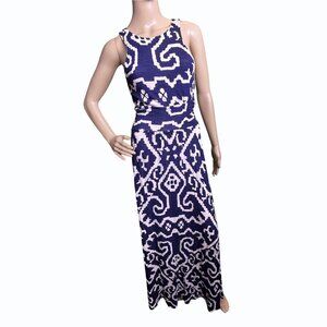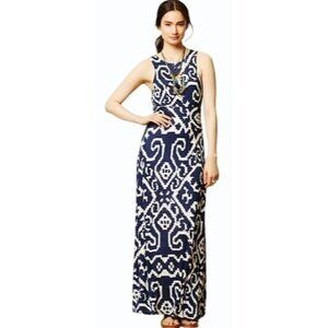 Anthropologie Maeve Navy White Ikat Print Sleeveless Maxi Dress Womens Small