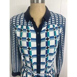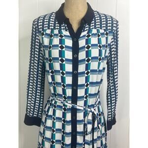 Anthropologie Maeve Navy/Green/White Shirt Dress with Drop Waist Size 2