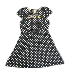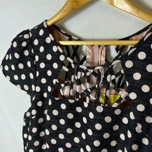 Anthropologie Maeve Nikola Black Cream Dot Print Lattice Neck SS Dress Size 12