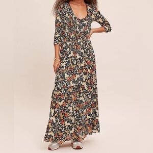 Anthropologie Maeve Omya Floral Smocked Maxi Dress Small