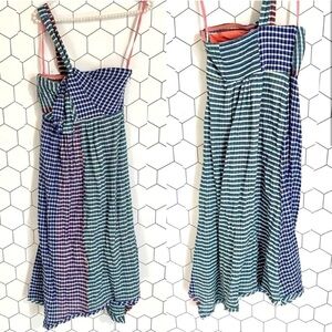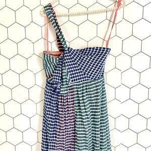 Anthropologie Maeve One Shoulder Waverley Color Block Checkered Dress SIZE 0