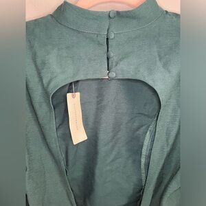 Anthropologie Maeve Open-Back Bow Blouse in Teal Green