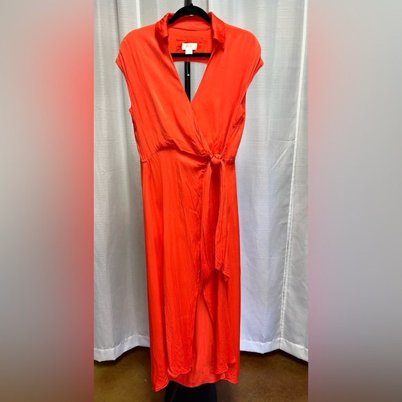 Anthropologie Maeve Open-Back Wrap Midi Dress in Orange NWT | size small