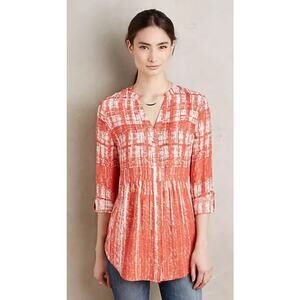 Anthropologie Maeve Orange White Calia Tunic Button Down Top Women's Size 8