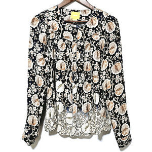 Anthropologie Maeve Ori Bibbed Floral Ombre Button Down Top Women's Size M Boho