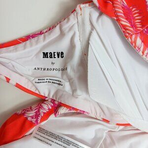 high-waisted bikini, vintage swimwear, retro beachwear, palm print swimsuit, halter neck bikini, button detail bikini, summer swimwear, women's swim set, coral bikini, beach fashion, swimwear for women, poolside glamour, tropical print bikini