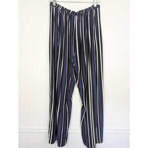 Anthropologie Maeve Pants Striped Side Slit Wide Leg Beach Resort Blue Size S