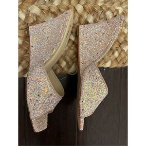 Anthropologie Maeve Pearl Pink Glitter Square Toe Heeled Mules, $168