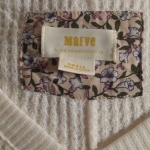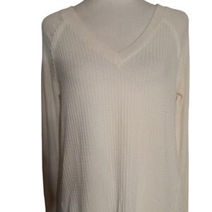 Anthropologie Maeve Pearson Cream Waffle Knit Relaxed Fit Long Sleeve Size Small