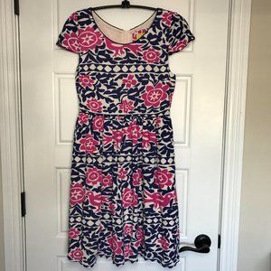 Anthropologie Maeve Peralta Bird Floral Dress w/ Pockets in Pink & Blue, Size 4
