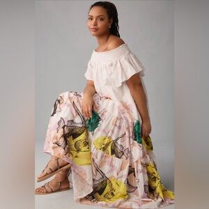 Anthropologie Maeve Pia Binazzi Tiered Off The Shoulder Dress in Novelty - SMALL