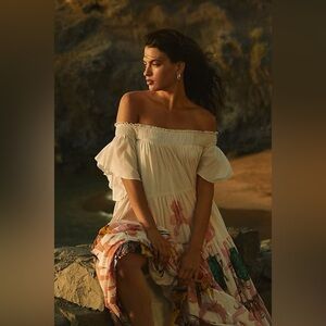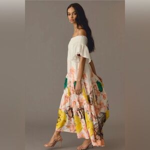 Anthropologie Maeve Pia Binazzi Tiered Off The Shoulder Dress in Novelty - SMALL