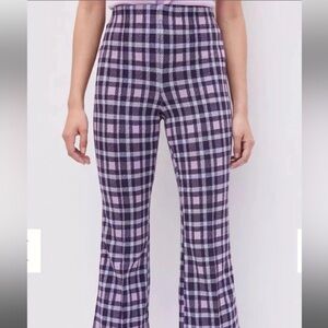 Anthropologie Maeve Picnic Plaid Pants in Purple Pink Pattern Size S