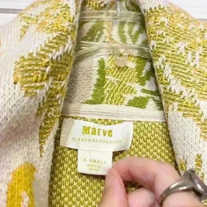 Anthropologie Maeve Pineapple Cream Green Yellow Knit Tapestry Button Up Cardigan Sweater Womens Size XS