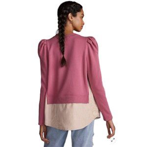 Anthropologie Maeve Pink Layered Long Puff Sleeve Tunic Sweatshirt Size M