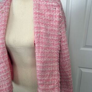 Anthropologie Maeve Pink Tweed Jacket Blazer Size 2 Y2K Preppy Office Pearls