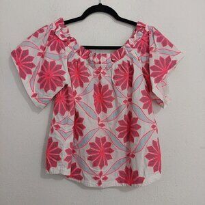 Anthropologie Maeve Pink White Embroidered Off-The-Shoulder Blouse Top Size S.