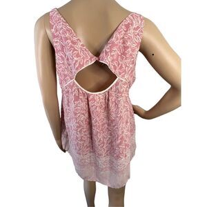 Anthropologie Maeve Pink and White Leaf Patterned Babydoll Tank Top