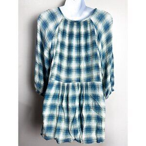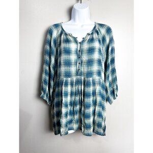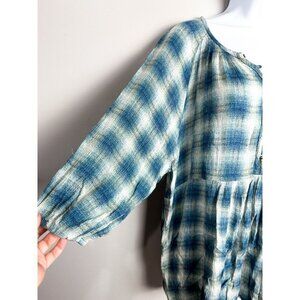 Anthropologie Maeve Plaid Cavalon Oversized Tunic Peplum Blouse Womens Medium