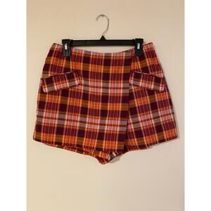 Anthropologie Maeve Plaid Skort Orange Purple Pink EUC US 8 Fall Basic