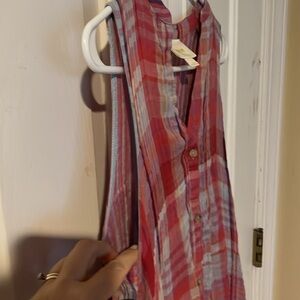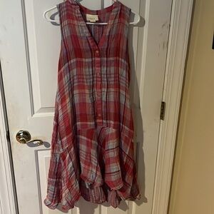 Anthropologie Maeve Plaid Sleeveless Button Front High Low Dress Medium