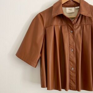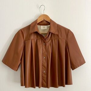 Anthropologie Maeve Pleated Vegan Leather Short Sleeve Shirt