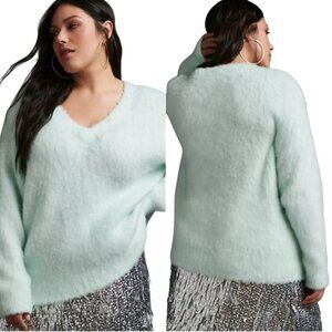 Anthropologie Maeve Plush V-neck Sweater Mint Green Fluffy Cozy Oversized Size S