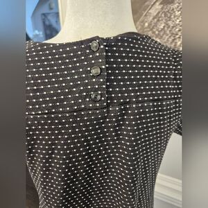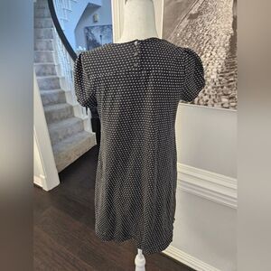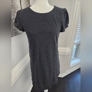 Anthropologie Maeve Polka Dot Shift Black Stretch Short Sleeve Dress Sz Medium
