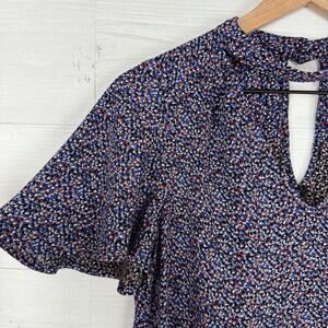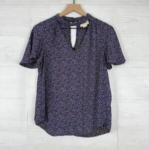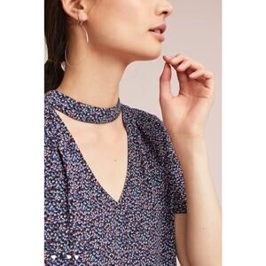 Anthropologie Maeve Printed Cutout Blouse M Floral Keyhole Crepe Flutter Sleeves