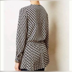 Anthropologie Maeve Printed Pleated Long Sleeve Tunic