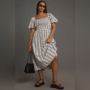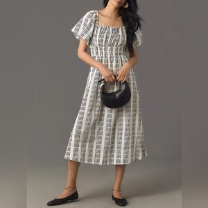 Anthropologie Maeve Puff Short Sleeve Square-Neck Smocked Midi Dress Whi…