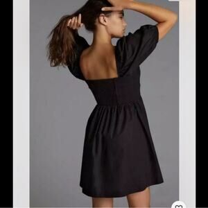 Anthropologie Maeve Puff Sleeve Smocked Button Front Black Mini Dress