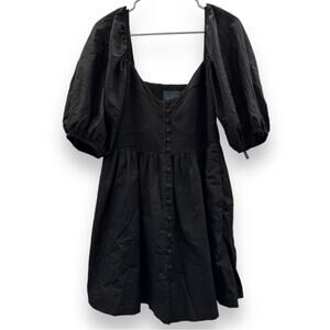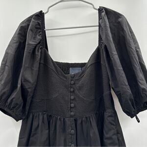 Anthropologie Maeve Puff Sleeve Smocked Button Front Black Mini Dress Size L NWT