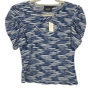Anthropologie | Maeve Puff Sleeve Striped Top, NWT, small, blue/white