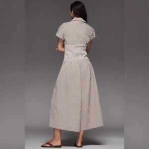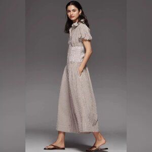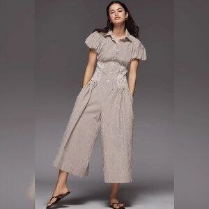 Anthropologie Maeve Puff-Sleeve Smocked Wide-Leg Jumpsuit, model pictures are for reference purposes only.