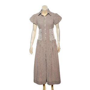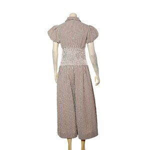Anthropologie Maeve Puff-Sleeve Smocked Wide-Leg Jumpsuit 1X Women Plaid 44090