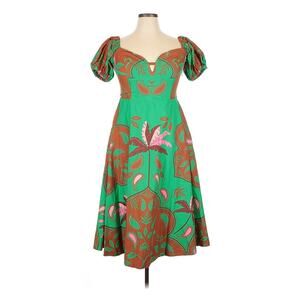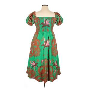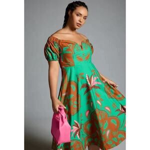The Anthropologie Maeve Puff-Sleeve Sweetheart Green Brown Print Dress in size 14 is a versatile and stylish option for various occasions. Featuring a flattering fit & flare style with puff sleeves and a sweetheart neckline, this midi-length dress is made from a comfortable cotton-modal blend. The floral green motif adds a touch of summer, fall, and spring to your wardrobe, making it a perfect choice for travel, parties, casual outings, formal events, or business meetings. This Anthropologie dress is a must-have for any fashion-forward woman looking for a chic and sophisticated outfit.