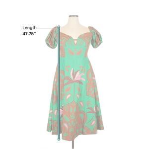 Anthropologie Maeve Puff-Sleeve Sweetheart Green Brown Print Dress 14