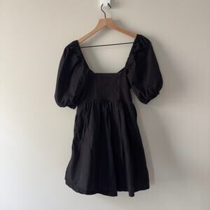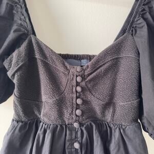 Anthropologie Maeve Puffed Sleeve Sweetheart Neckline Button down Mini Dress S