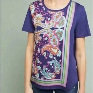 Anthropologie Maeve Purple Paisley Overlay Maddie Printed Top
