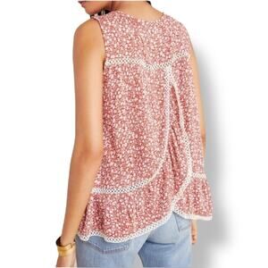 Anthropologie Maeve Quinn Lace Peplum Top Red Microfloral Women's M Top